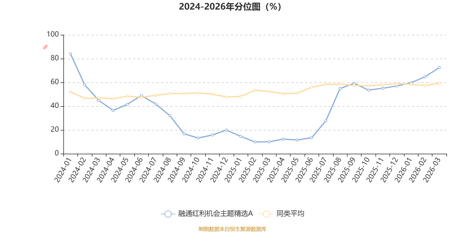 通过所选区间该基金净值增长率分位图,可以观察该基金与同类基金业绩比较情况。图为坐标原点到区间内某时点的净值增长率在同类基金中的分位数。