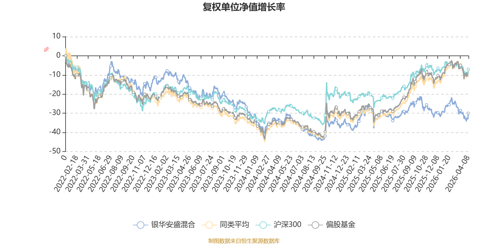 截至4月8日,银华安盛混合近三个月复权单位净值增长率为-5.13%,位于同类可比基金228/265;近半年复权单位净值增长率为-10.95%,位于同类可比基金252/265;近一年复权单位净值增长率为9.97%,位于同类可比基金259/265;近三年复权单位净值增长率为-21.36%,位于同类可比基金253/261。