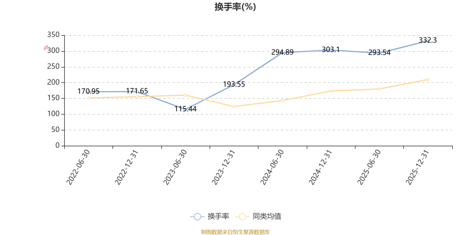 截至2025年12月31日,基金最近一年换手率约632.34%,持续2年高于同类均值。