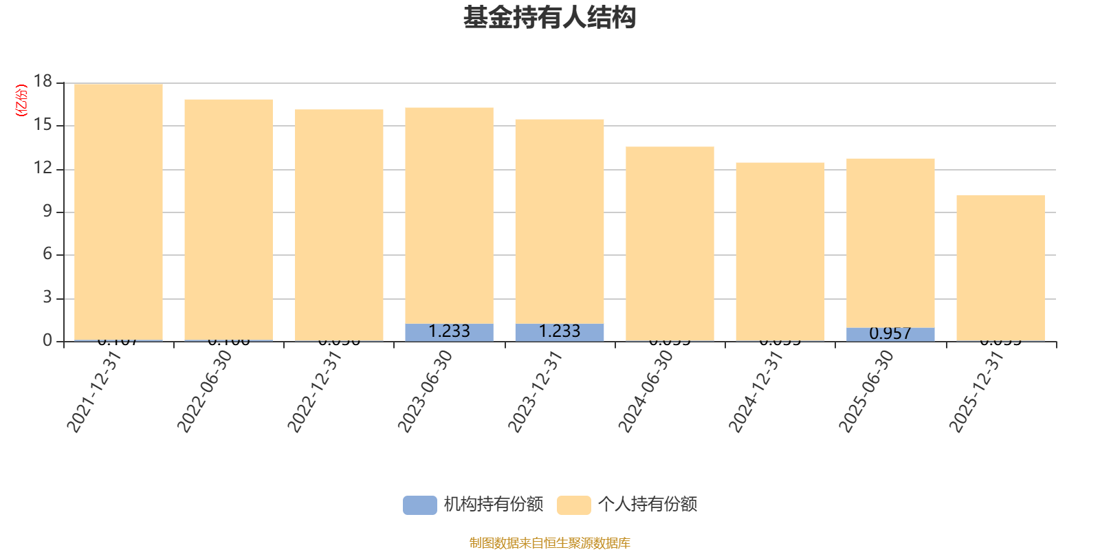 截至2025年12月31日,基金持有人共计1.13万户,合计持有10.16亿份。其中管理人员工持有69.77万份,占比0.07%,机构持有份额占比0.54%,个人投资者占比99.46%。