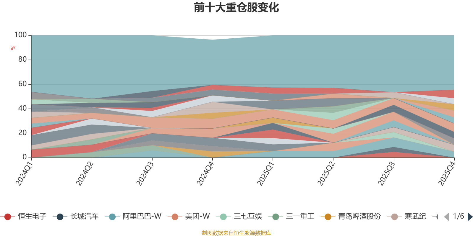 截至2025年末,基金十大重仓股分别是中芯国际、腾讯控股、寒武纪、中际旭创、新易盛、嘉元科技、立讯精密、泡泡玛特、阿里巴巴-W、思摩尔国际。