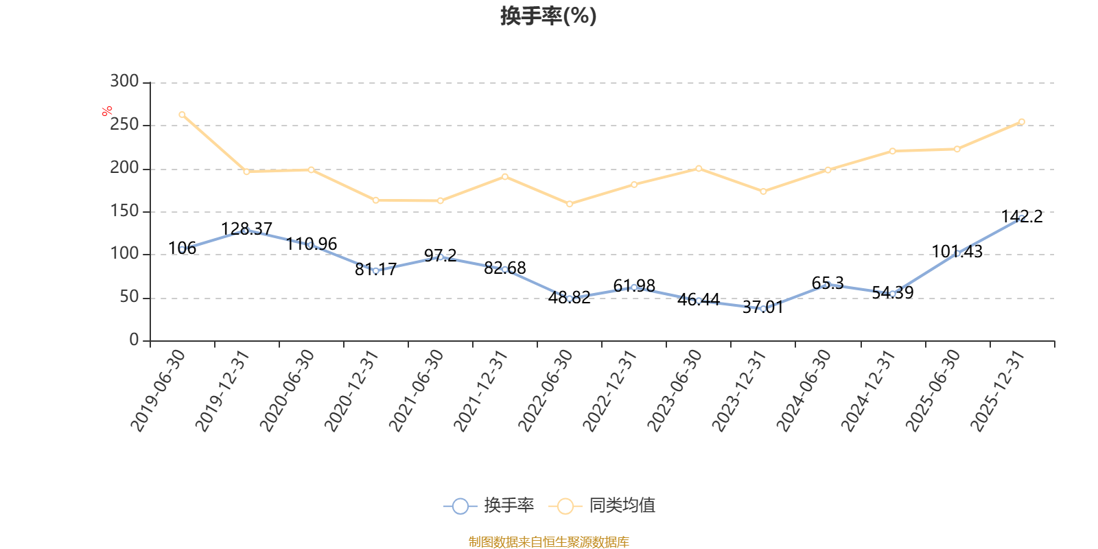 截至2025年12月31日,基金最近一年换手率约242.91%,持续低于同类均值。
