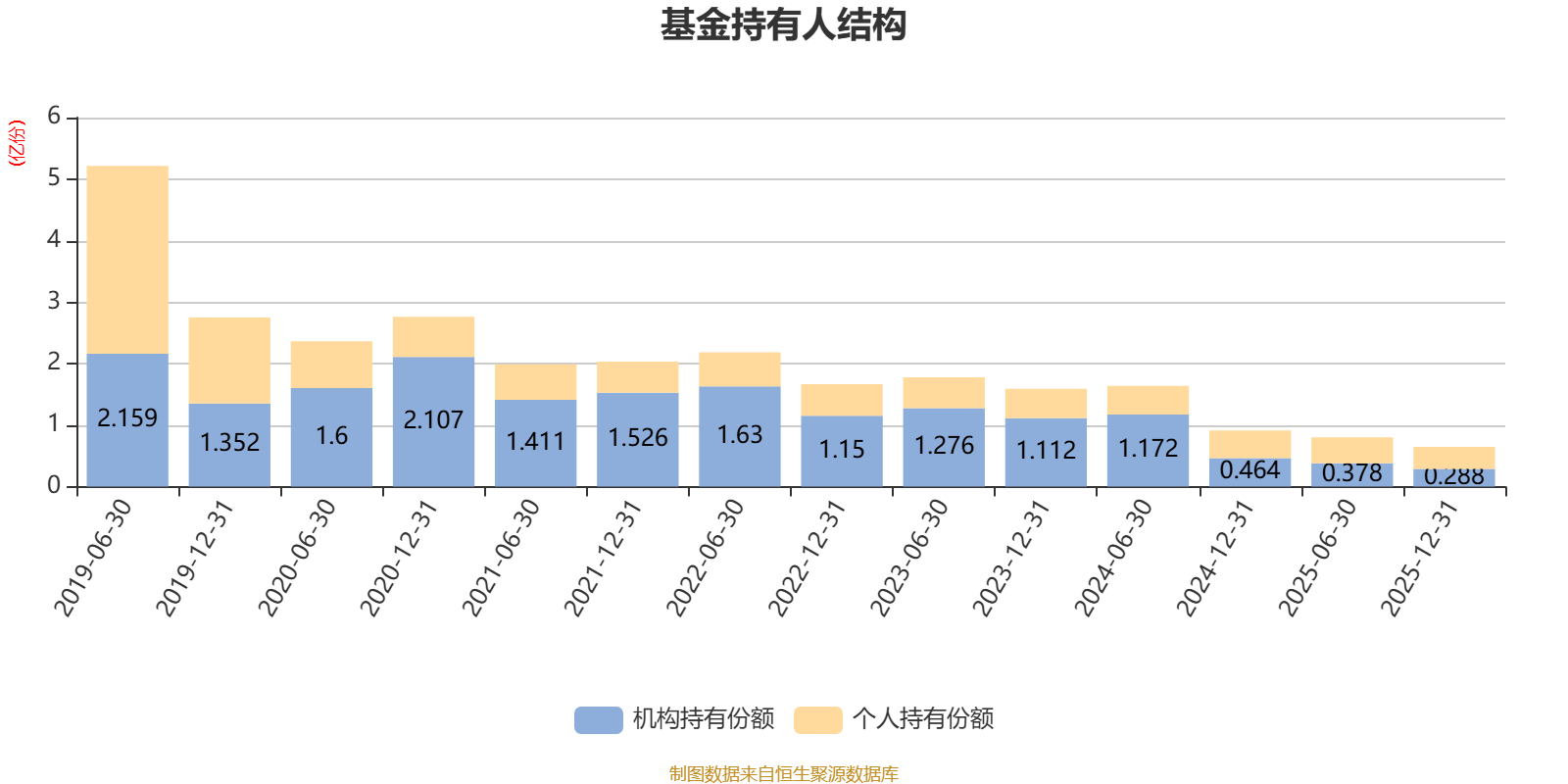 截至2025年12月31日,基金持有人共计1833户,合计持有6460.66万份。其中管理人员工持有689.02万份,占比10.66%,机构持有份额占比44.52%,个人投资者占比55.48%。