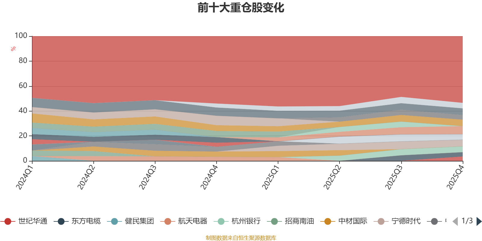 截至2025年末,基金十大重仓股分别是腾讯控股、海尔智家、宁德时代、贵州茅台、杭州银行、中国平安、恒瑞医药、中天科技、世纪华通、东方电缆。