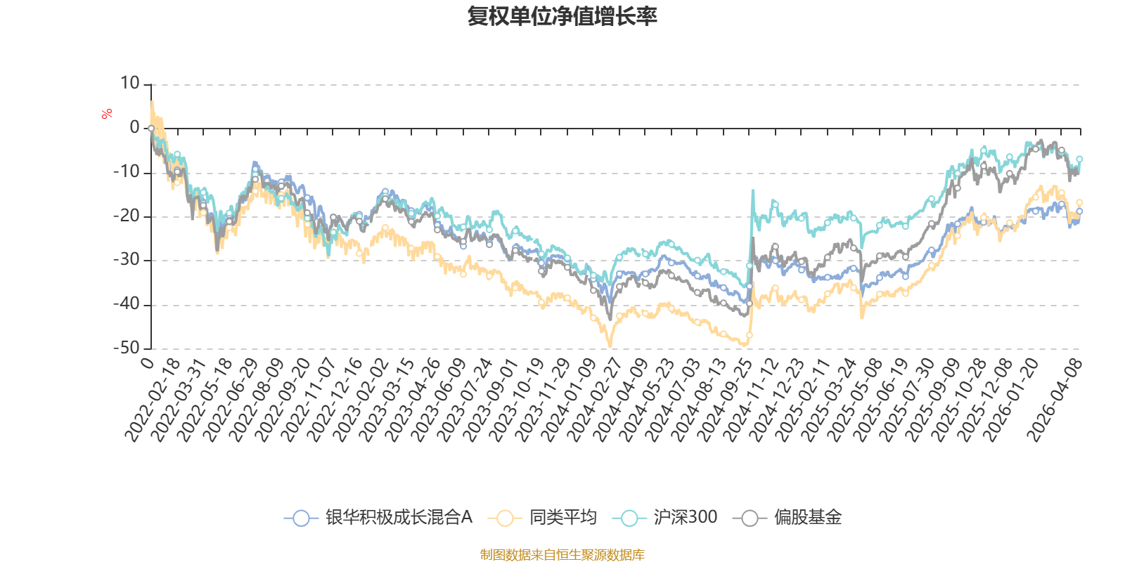 截至4月8日,银华积极成长混合A近三个月复权单位净值增长率为0.41%,位于同类可比基金298/621;近半年复权单位净值增长率为-0.59%,位于同类可比基金388/621;近一年复权单位净值增长率为29.81%,位于同类可比基金432/618;近三年复权单位净值增长率为-2.48%,位于同类可比基金440/559。