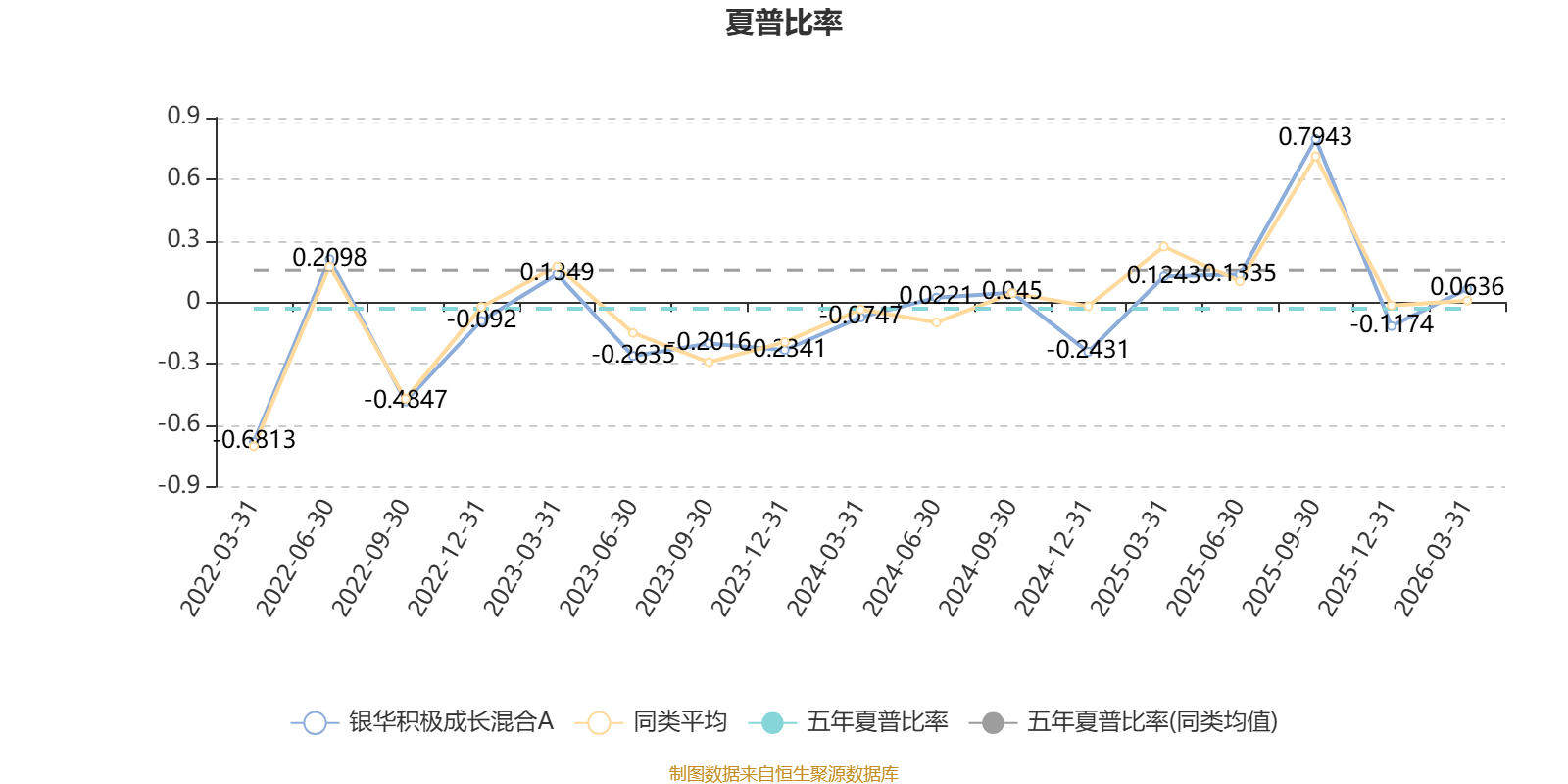 截至3月31日,基金近三年夏普比率为0.2057,位于同类可比基金437/550。