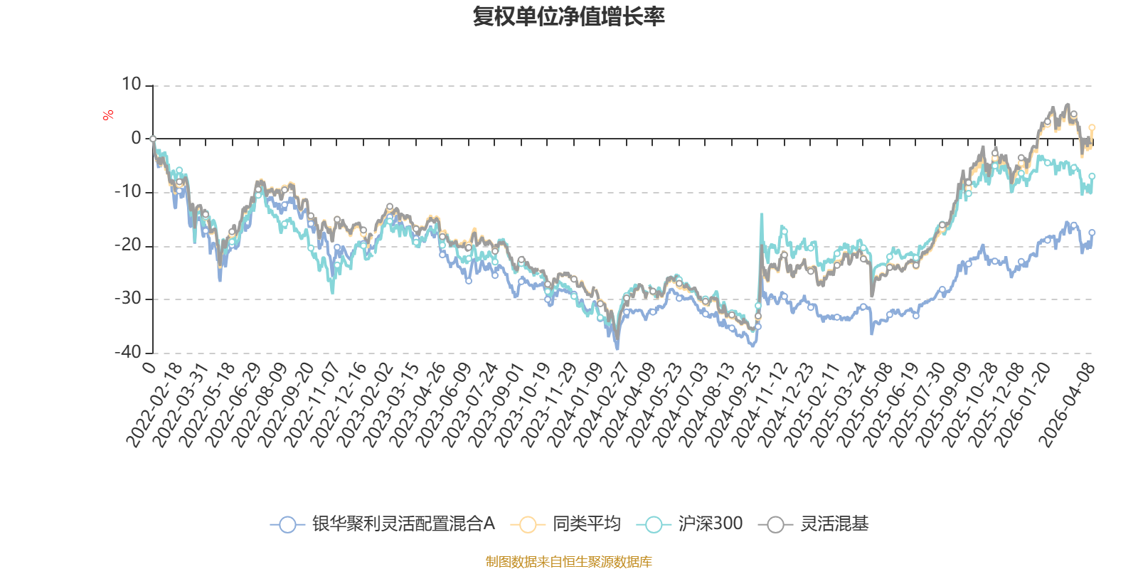 截至4月8日,银华聚利灵活配置混合A近三个月复权单位净值增长率为2.70%,位于同类可比基金343/1287;近半年复权单位净值增长率为3.13%,位于同类可比基金603/1286;近一年复权单位净值增长率为28.51%,位于同类可比基金737/1286;近三年复权单位净值增长率为-1.54%,位于同类可比基金991/1286。