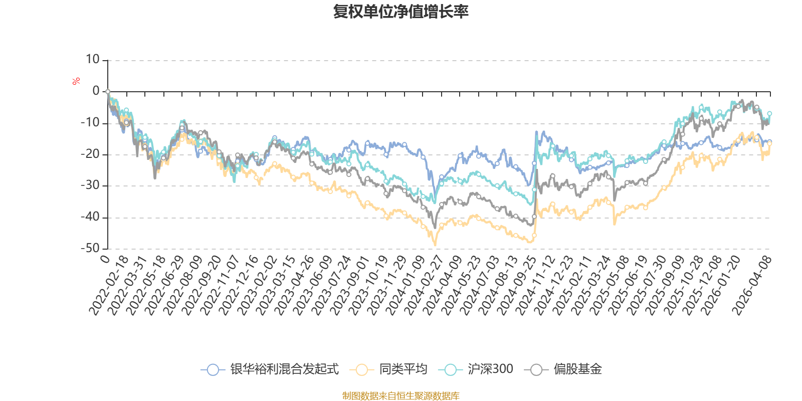 截至4月8日,银华裕利混合发起式近三个月复权单位净值增长率为1.53%,位于同类可比基金270/689;近半年复权单位净值增长率为2.41%,位于同类可比基金368/689;近一年复权单位净值增长率为11.99%,位于同类可比基金621/685;近三年复权单位净值增长率为-1.35%,位于同类可比基金293/417。
