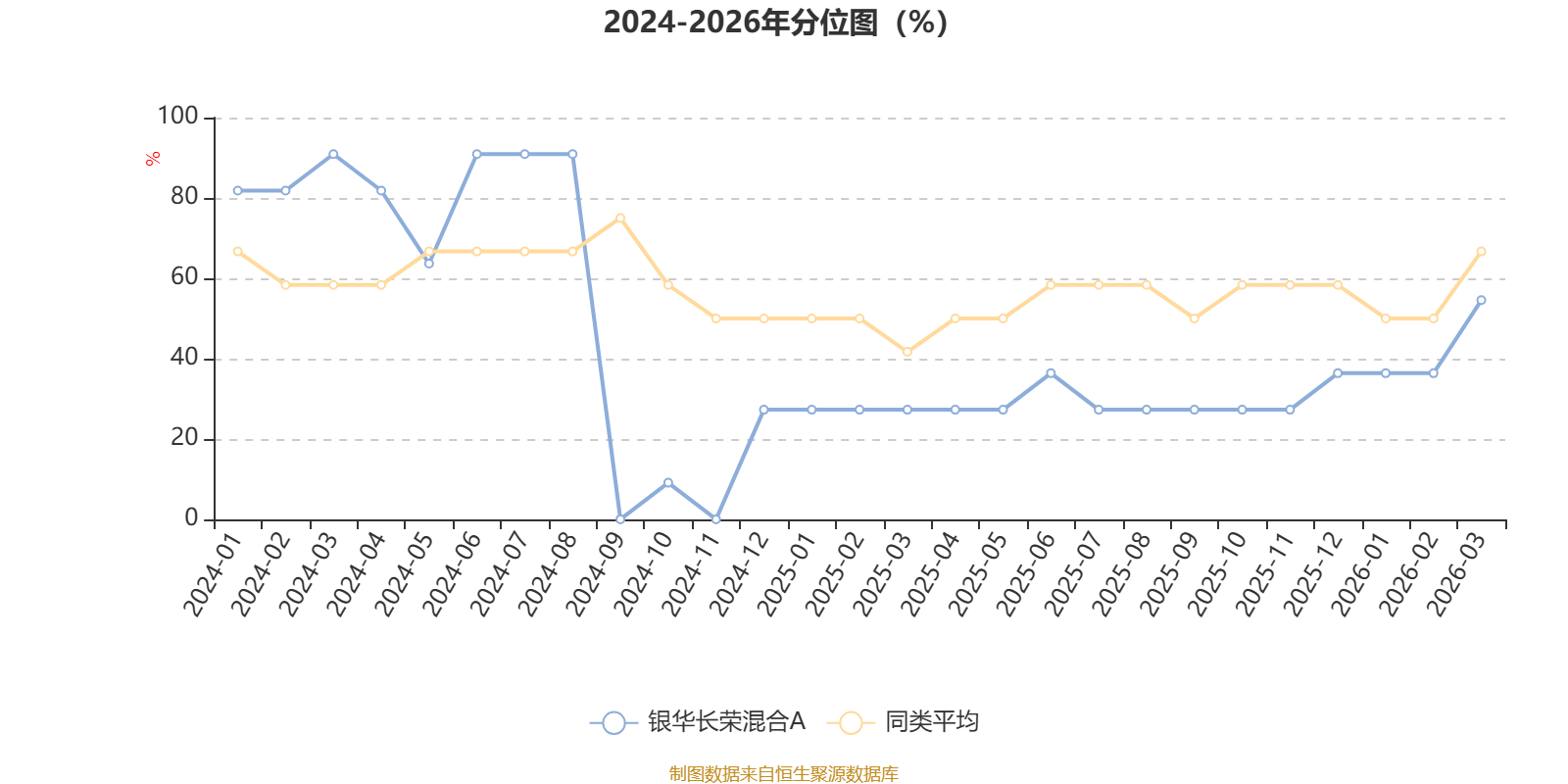 通过所选区间该基金净值增长率分位图,可以观察该基金与同类基金业绩比较情况。图为坐标原点到区间内某时点的净值增长率在同类基金中的分位数。