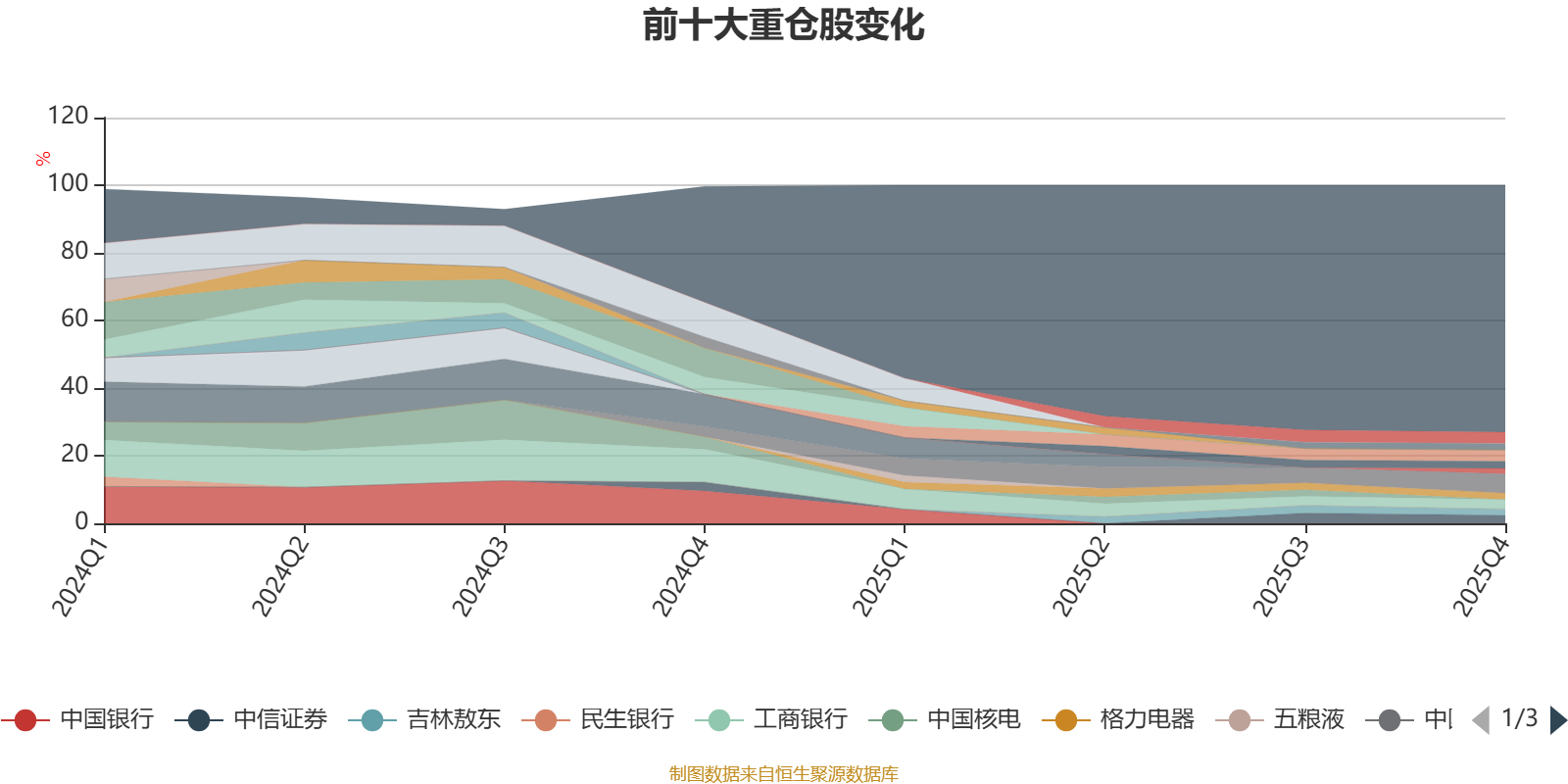 截至2025年末,基金十大重仓股分别是中国平安、美的集团、兴业银行、工商银行、中信证券、国泰海通、格力电器、龙佰集团、吉林敖东、伊利股份。