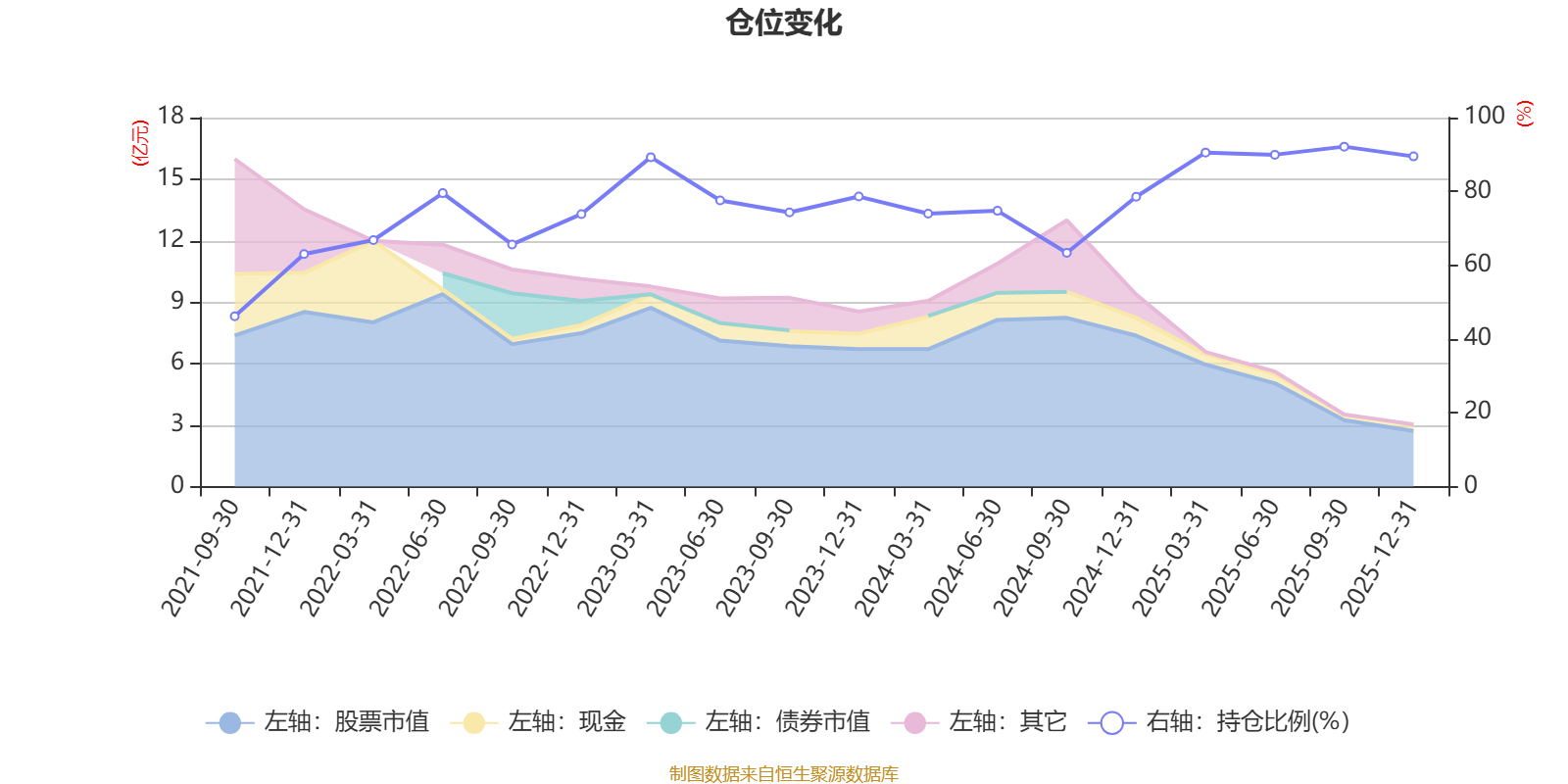 据定期报告数据统计,近三年平均股票仓位为81.03%,同类平均为87.05%。2025年三季度末基金达到92.13%的最高仓位,2021年三季度末最低,为46.15%。