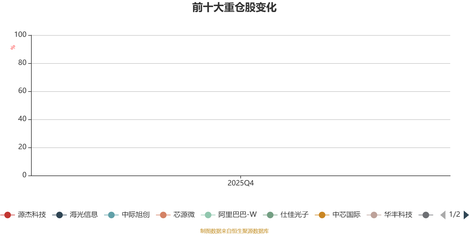 截至2025年末,基金十大重仓股分别是中芯国际、长芯博创、中际旭创、华丰科技、阿里巴巴-W、源杰科技、芯源微、仕佳光子、长川科技、海光信息。