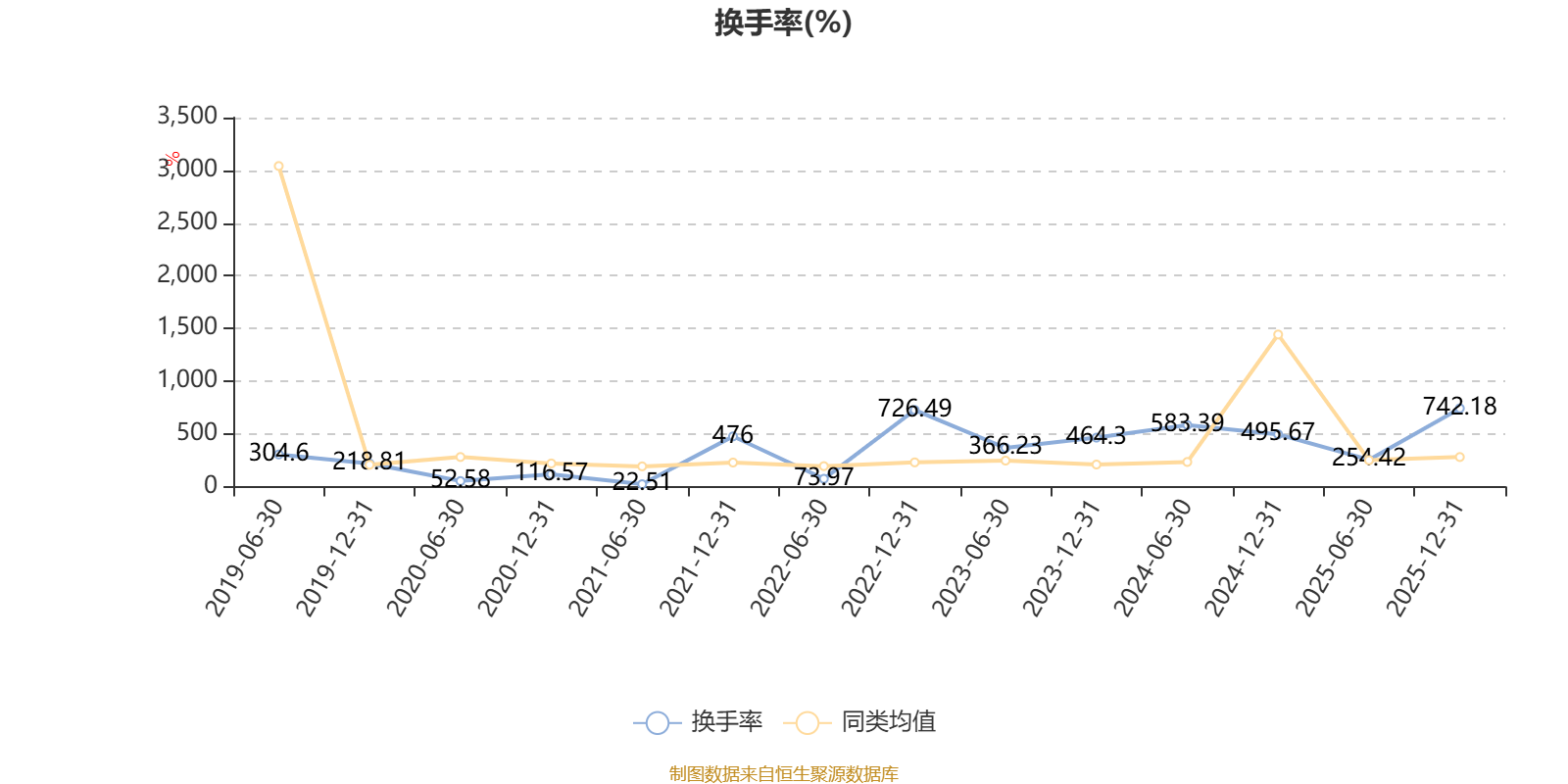 截至2025年12月31日,基金最近一年换手率约528.6%,持续1年高于同类均值。