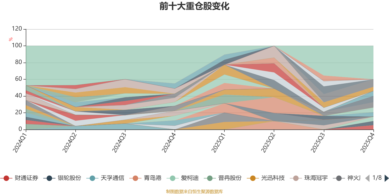 该基金持股集中度较高。截至2025年末,基金十大重仓股分别是赤峰黄金、华泰证券、歌尔股份、领益智造、亿纬锂能、爱柯迪、百洋医药、财通证券、立讯精密、银轮股份。