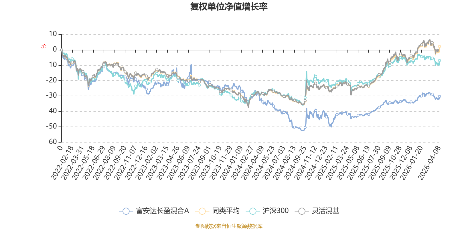 截至4月8日,富安达长盈混合A近三个月复权单位净值增长率为0.59%,位于同类可比基金571/1287;近半年复权单位净值增长率为3.79%,位于同类可比基金561/1286;近一年复权单位净值增长率为26.07%,位于同类可比基金804/1286;近三年复权单位净值增长率为-20.12%,位于同类可比基金1207/1286。