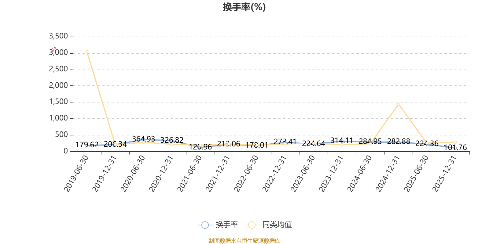 截至2025年12月31日,基金最近一年换手率约315.52%,持续1年低于同类均值。