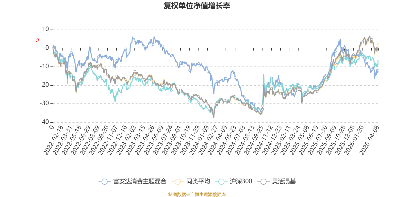 截至4月8日,富安达消费主题混合近三个月复权单位净值增长率为-8.80%,位于同类可比基金1202/1287;近半年复权单位净值增长率为-15.85%,位于同类可比基金1251/1286;近一年复权单位净值增长率为23.18%,位于同类可比基金852/1286;近三年复权单位净值增长率为-14.75%,位于同类可比基金1153/1286。