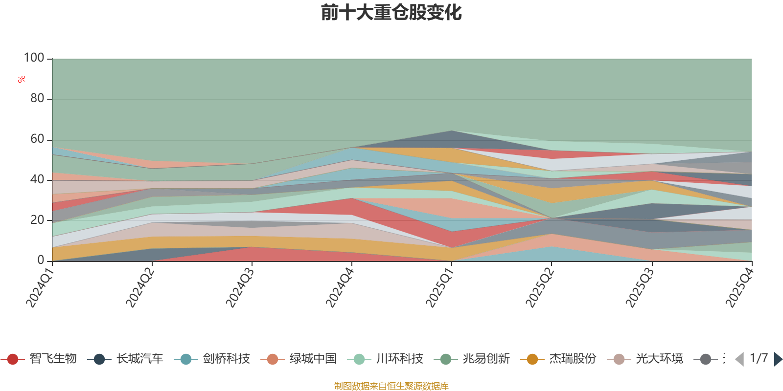 截至2025年末,基金十大重仓股分别是海科新源、星源材质、中国国航、恩捷股份、华盛锂电、兆易创新、鲁西化工、京泉华、天赐材料、川环科技。
