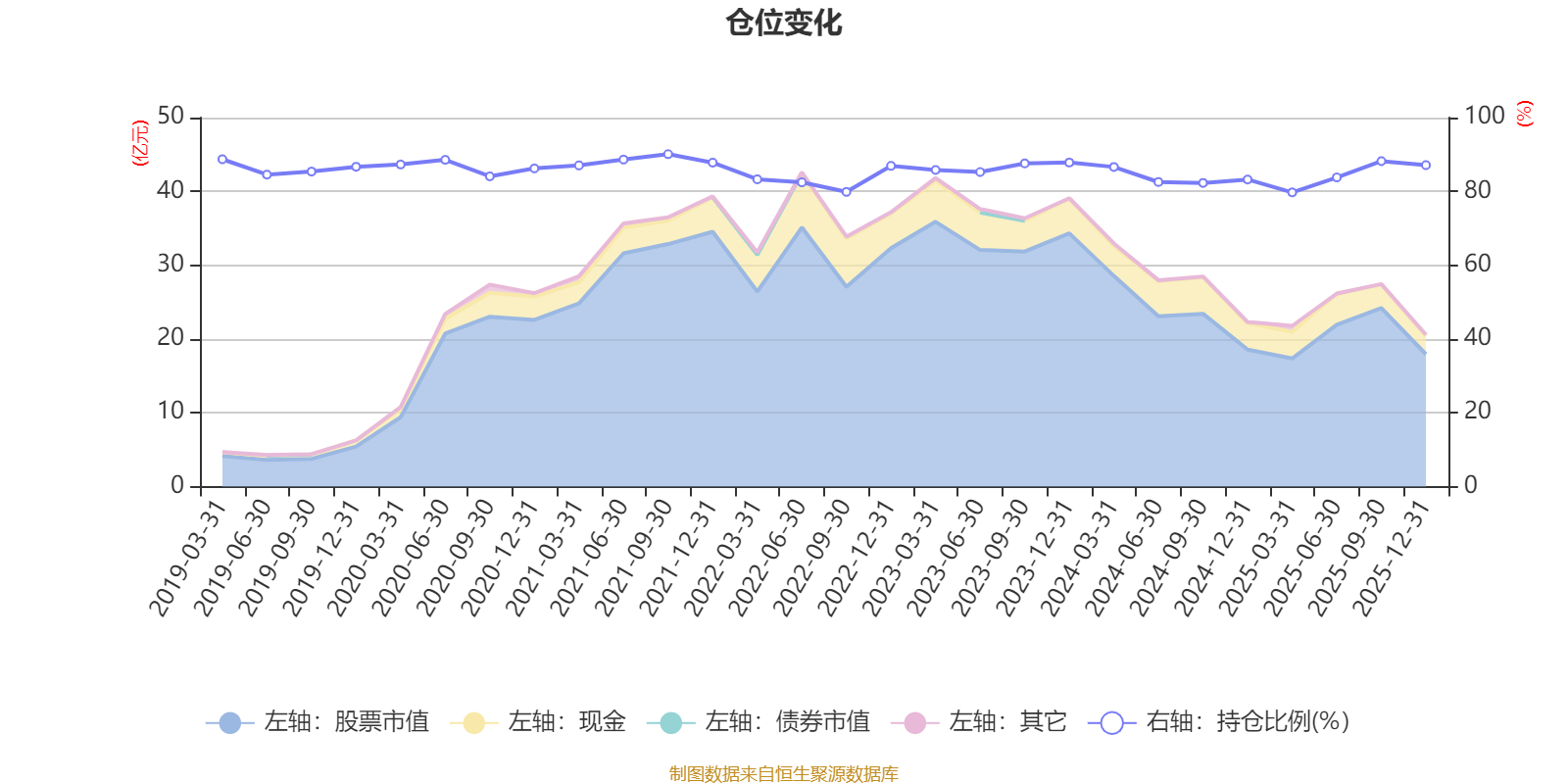 据定期报告数据统计,近三年平均股票仓位为85%,同类平均为88.23%。2021年三季度末基金达到90.1%的最高仓位,2025年一季度末最低,为79.72%。