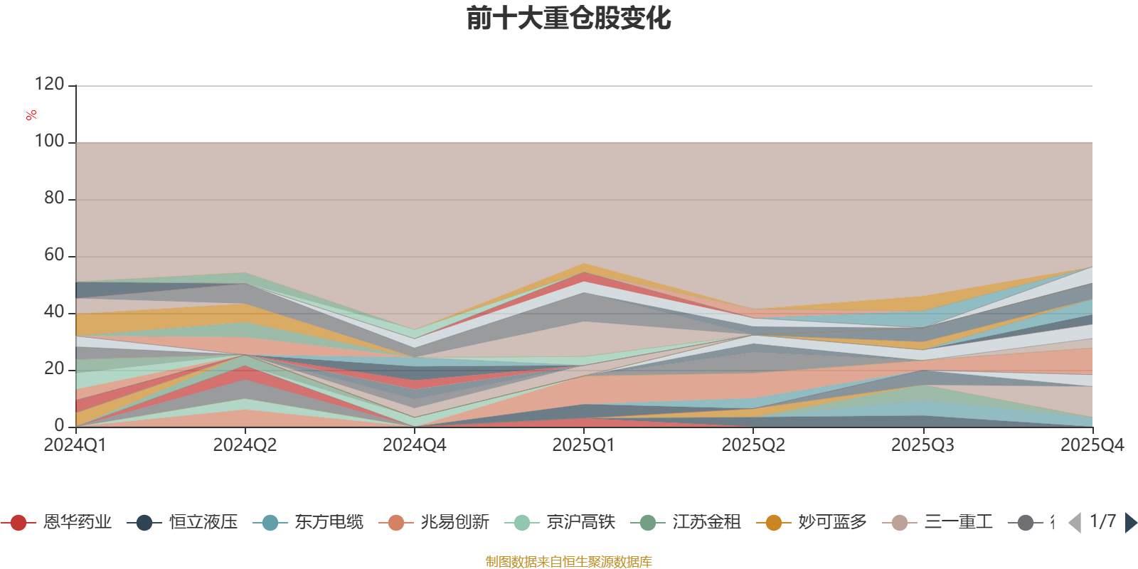 截至2025年末,基金十大重仓股分别是三一重工、宁德时代、立讯精密、伊利股份、鹏鼎控股、中国平安、北京银行、吉祥航空、分众传媒、东方电缆。