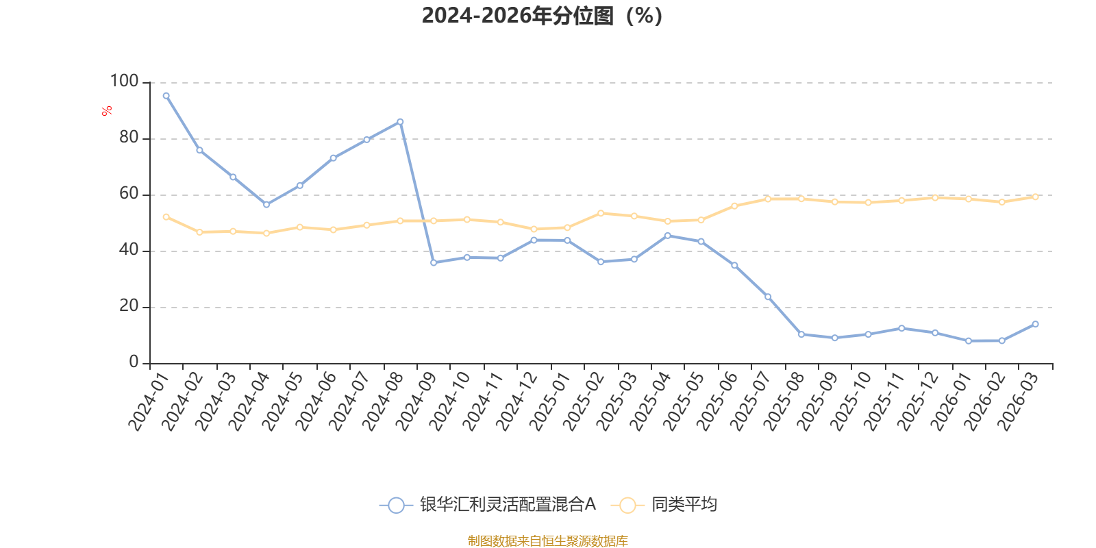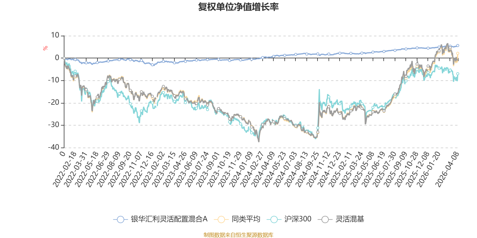 截至4月8日,银华汇利灵活配置混合A近三个月复权单位净值增长率为0.88%,位于同类可比基金534/1287;近半年复权单位净值增长率为1.19%,位于同类可比基金766/1286;近一年复权单位净值增长率为3.41%,位于同类可比基金1222/1286;近三年复权单位净值增长率为7.30%,位于同类可比基金797/1286。