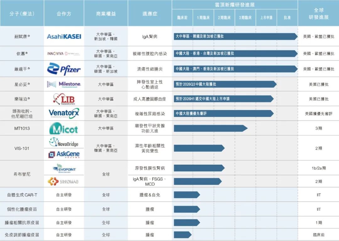 2025年12月,云顶新耀与海森生物合作,为其6款成熟产品提供商业化服务,覆盖急重症、心血管和代谢三个领域。