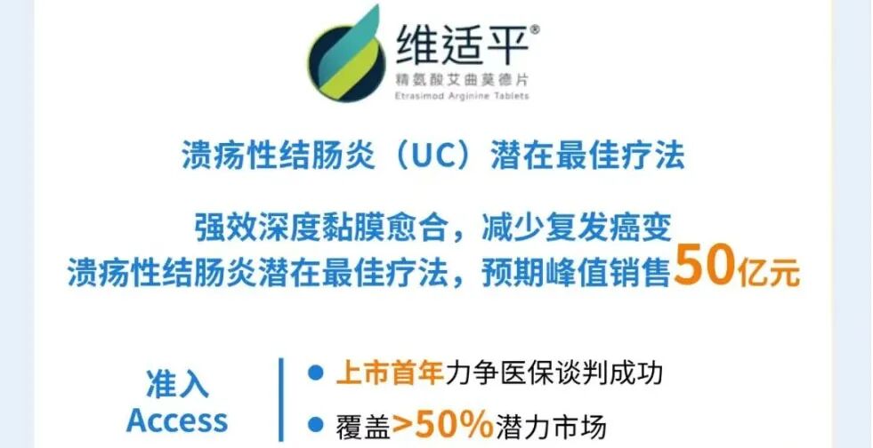 另一款产品维适平,2月获批上市,也被寄予厚望。该药用于治疗溃疡性结肠炎,每月的治疗费用超过8000元。