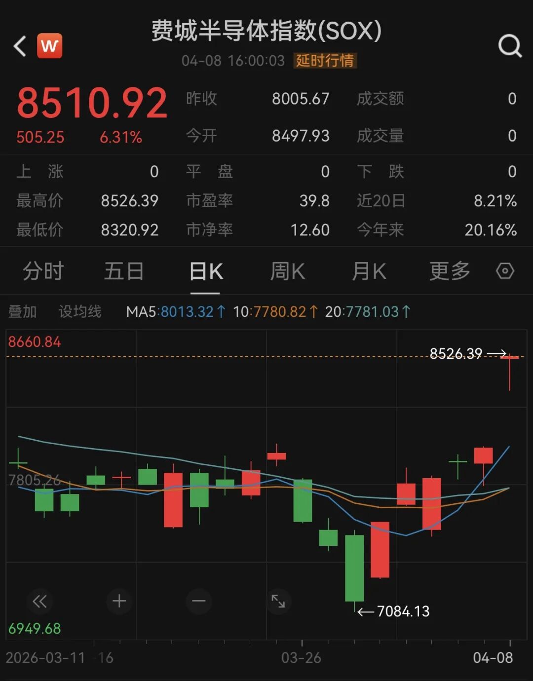 芯片股表现强劲,费城半导体指数涨6.31%,创历史新高。英特尔涨超11%,拉姆研究涨近10%,应用材料、阿斯麦涨超8%,美光科技涨超7%。