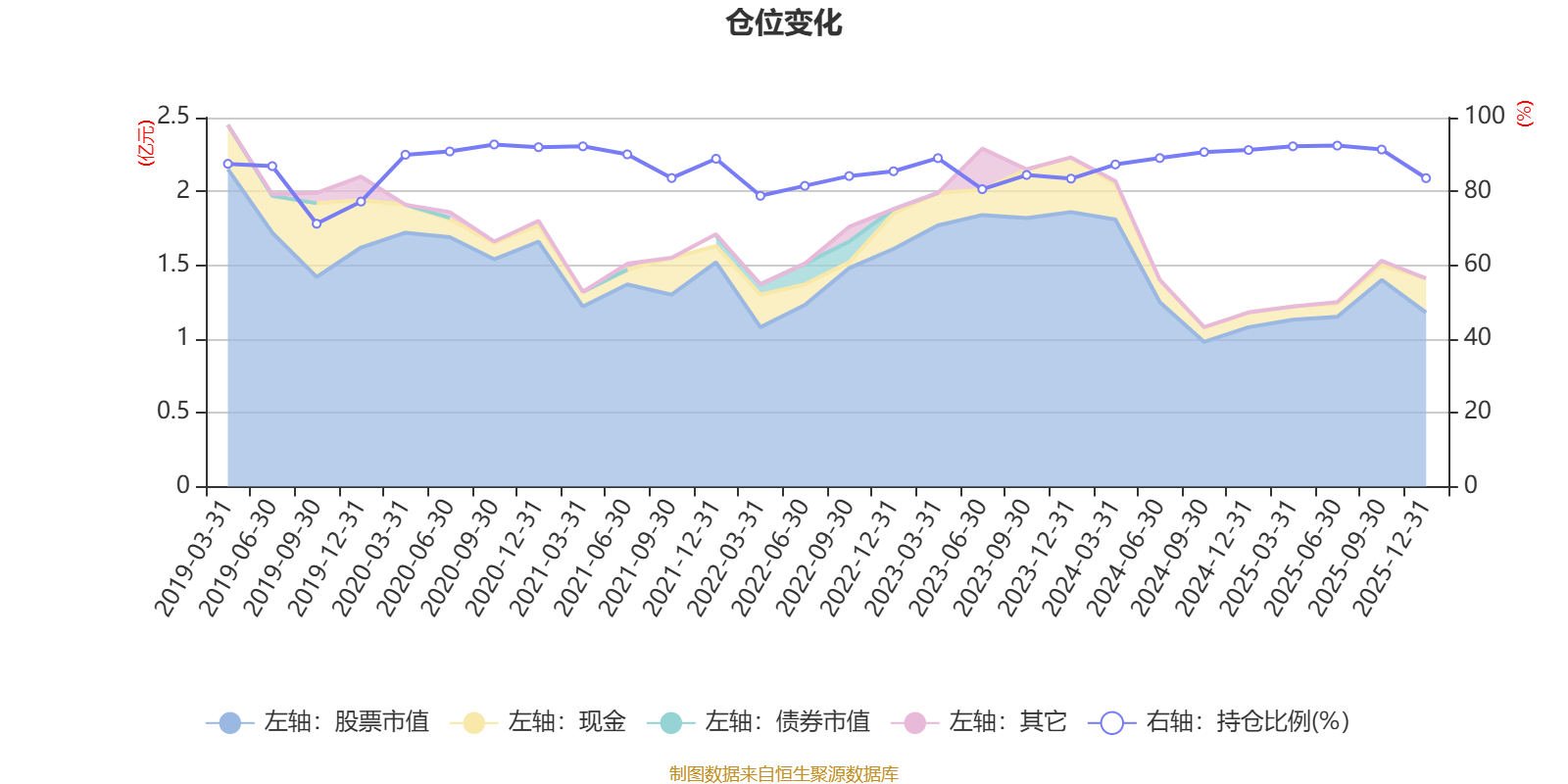 据定期报告数据统计,近三年平均股票仓位为87.94%,同类平均为72.57%。2020年三季度末基金达到92.72%的最高仓位,2019年三季度末最低,为71.23%。