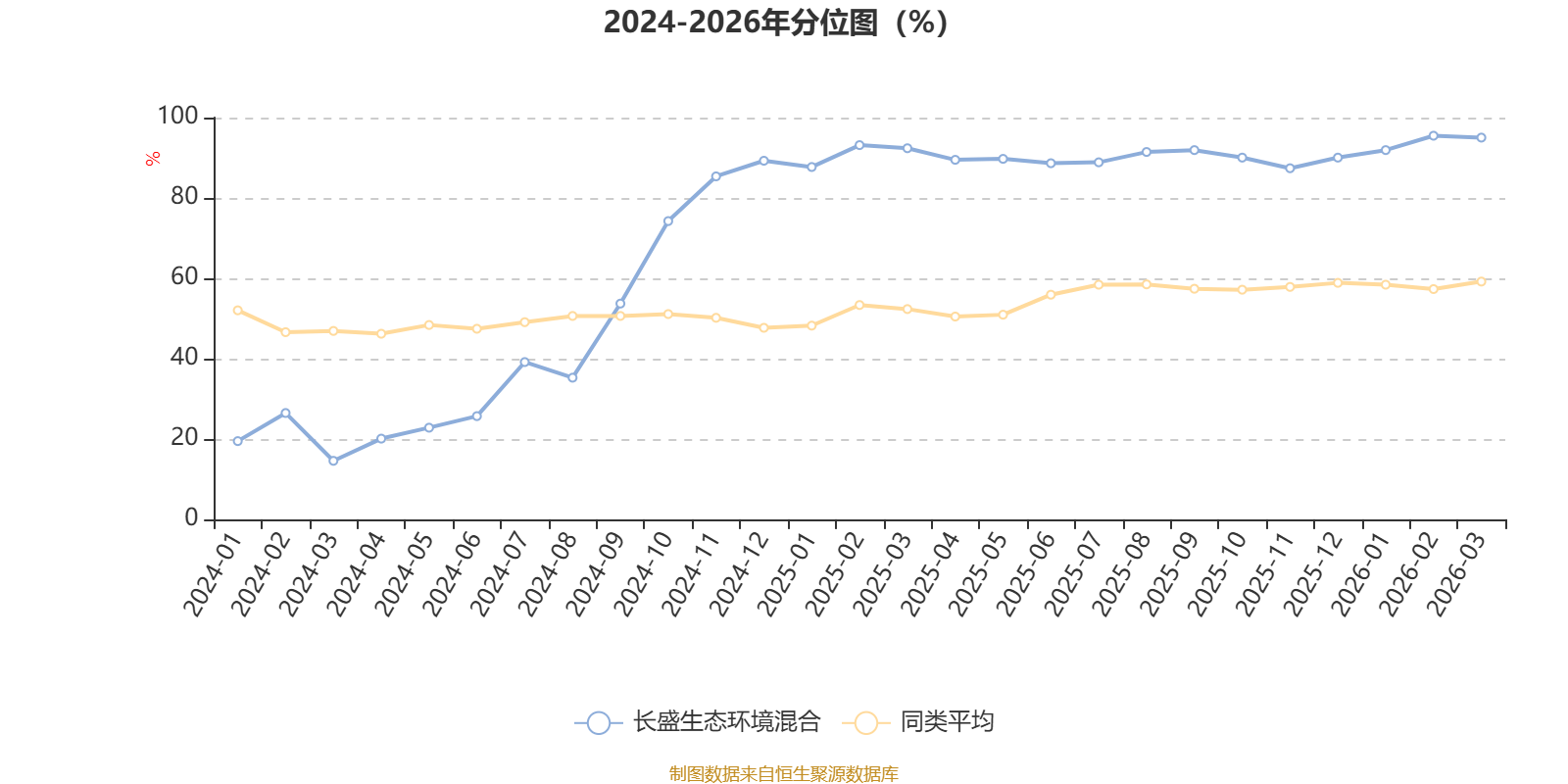 通过所选区间该基金净值增长率分位图,可以观察该基金与同类基金业绩比较情况。图为坐标原点到区间内某时点的净值增长率在同类基金中的分位数。