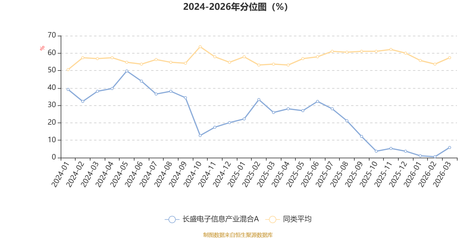 通过所选区间该基金净值增长率分位图,可以观察该基金与同类基金业绩比较情况。图为坐标原点到区间内某时点的净值增长率在同类基金中的分位数。