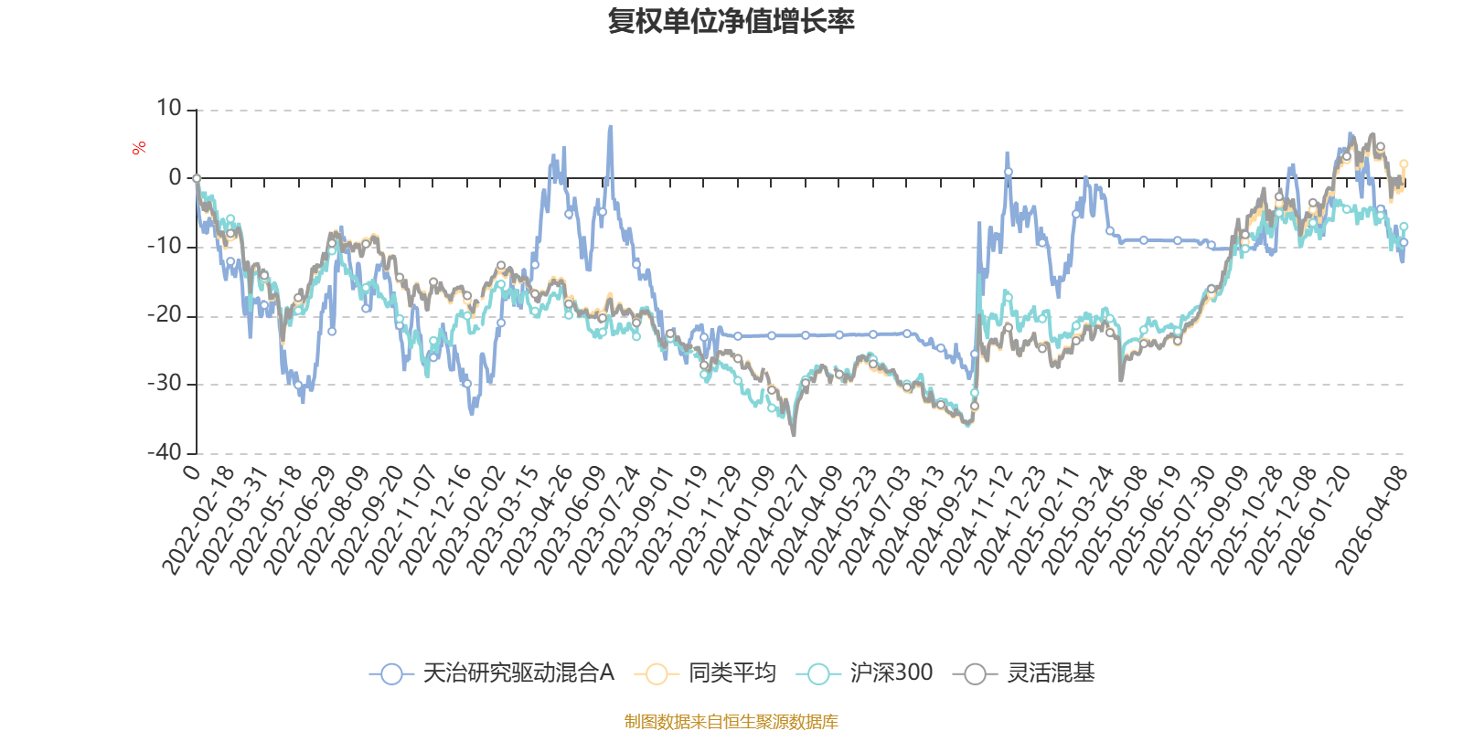截至4月8日,天治研究驱动混合A近三个月复权单位净值增长率为-11.58%,位于同类可比基金1242/1287;近半年复权单位净值增长率为-3.31%,位于同类可比基金1026/1286;近一年复权单位净值增长率为0.11%,位于同类可比基金1259/1286;近三年复权单位净值增长率为-12.42%,位于同类可比基金1131/1286。