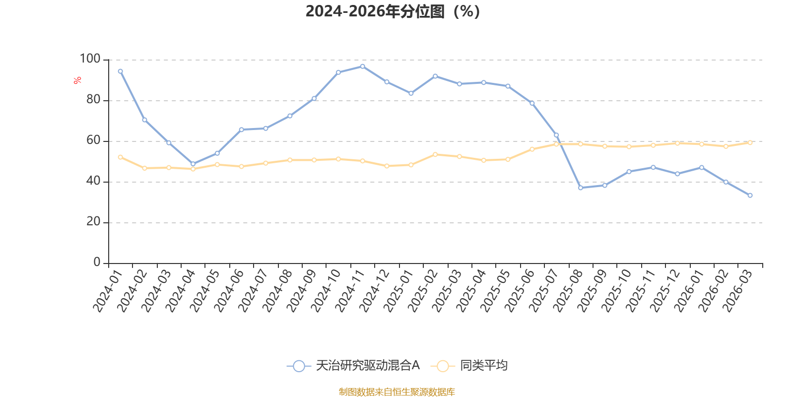 通过所选区间该基金净值增长率分位图,可以观察该基金与同类基金业绩比较情况。图为坐标原点到区间内某时点的净值增长率在同类基金中的分位数。