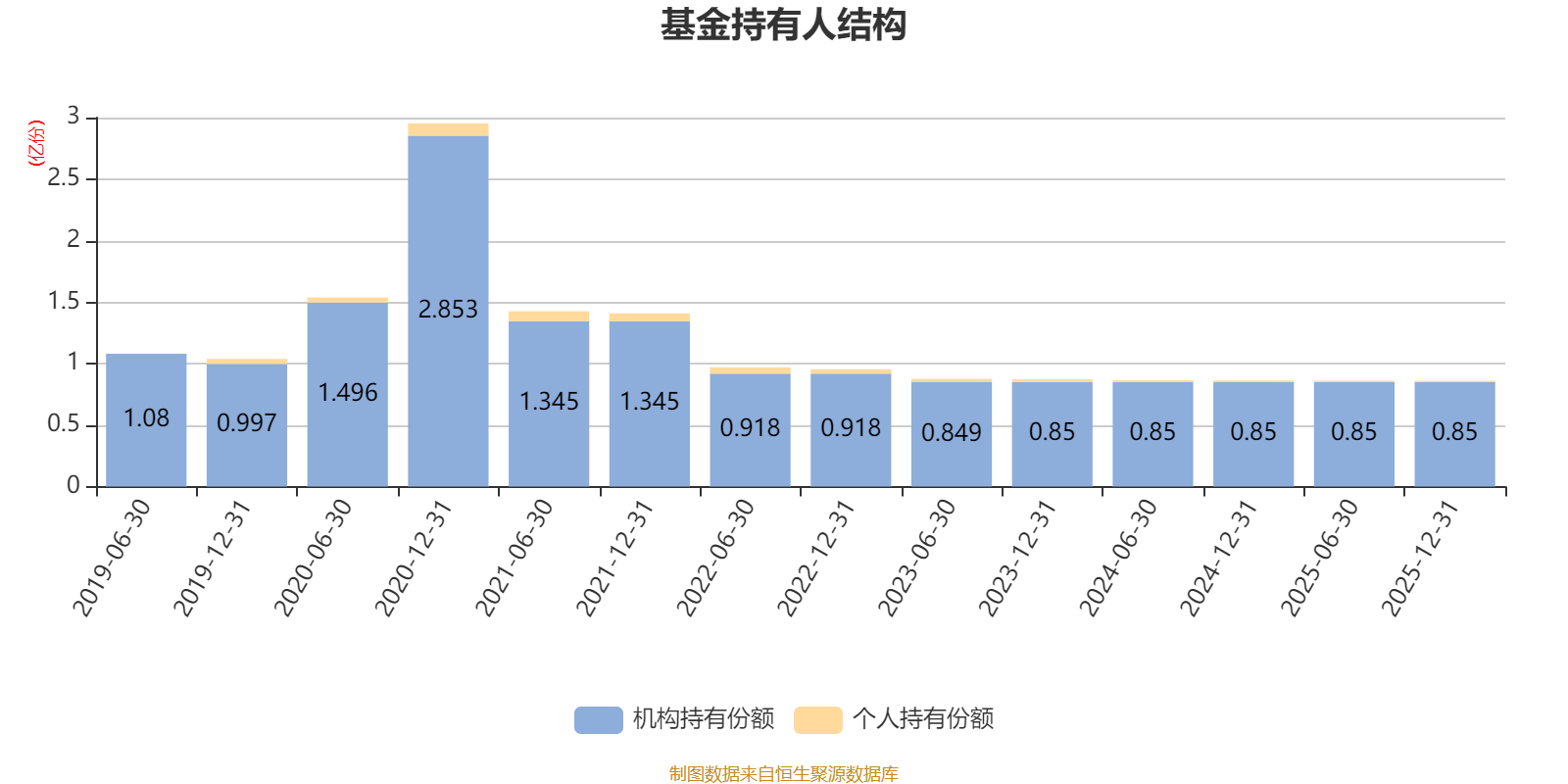 截至2025年12月31日,基金持有人共计279户,合计持有8601.28万份。其中管理人员工持有0份,机构持有份额占比98.82%,个人投资者占比1.18%。