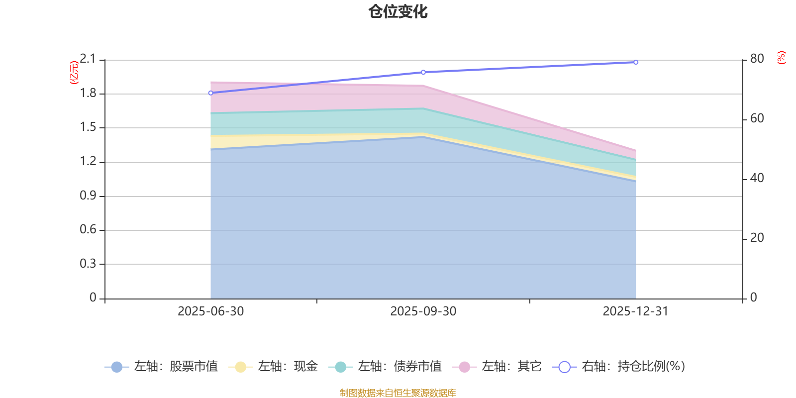 据定期报告数据统计,成立以来平均股票仓位为74.6%,同类平均为84.04%。2025年末基金达到79.16%的最高仓位,2025年上半年末最低,为68.86%。