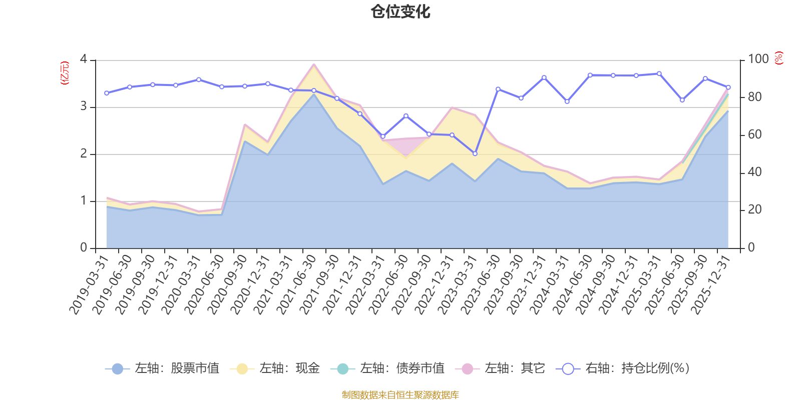 据定期报告数据统计,近三年平均股票仓位为83.83%,同类平均为72.57%。2025年一季度末基金达到92.79%的最高仓位,2023年一季度末最低,为50.26%。