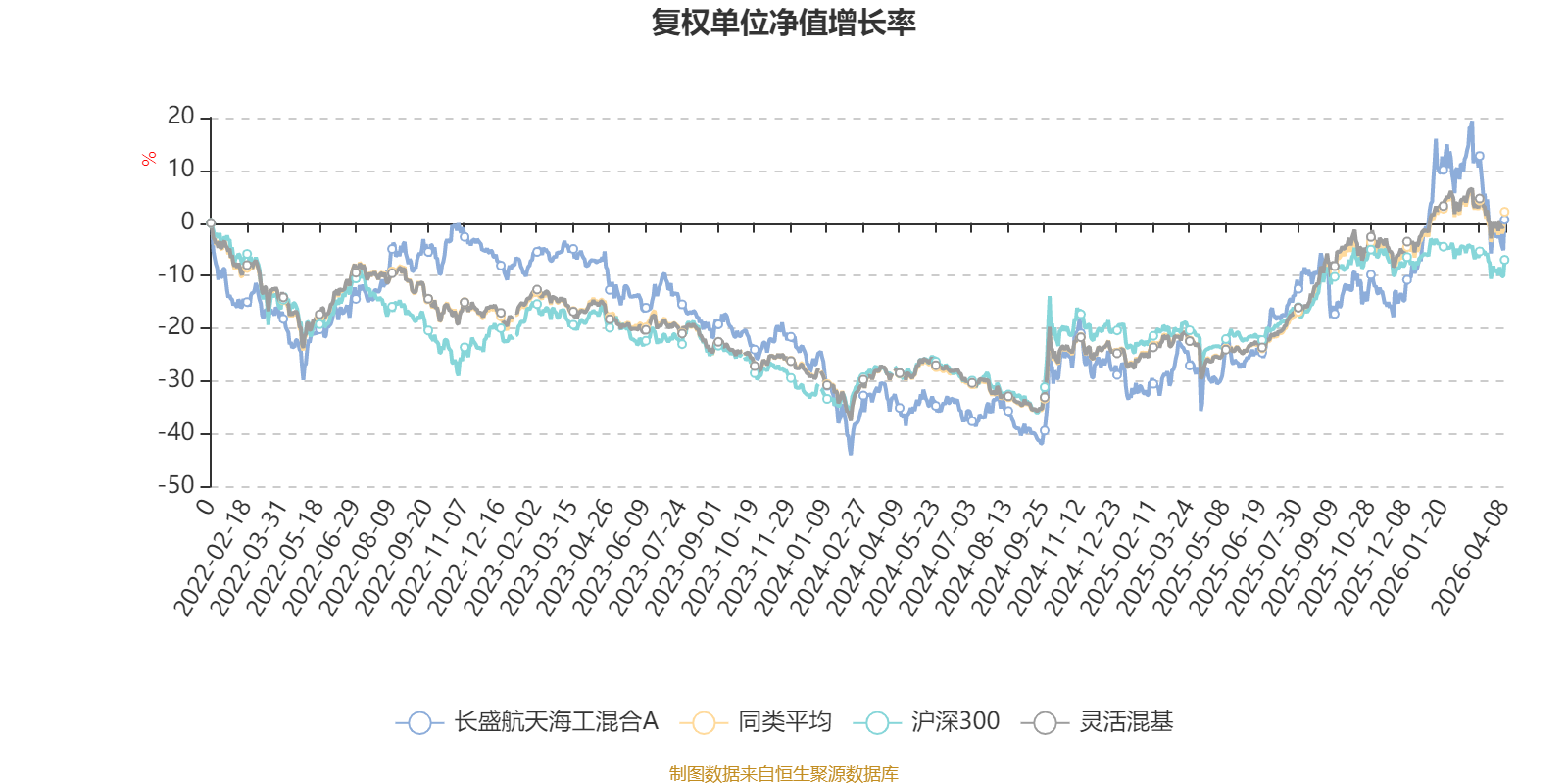 截至4月8日,长盛航天海工混合A近三个月复权单位净值增长率为-7.10%,位于同类可比基金1159/1287;近半年复权单位净值增长率为11.12%,位于同类可比基金239/1286;近一年复权单位净值增长率为53.03%,位于同类可比基金367/1286;近三年复权单位净值增长率为8.49%,位于同类可比基金768/1286。