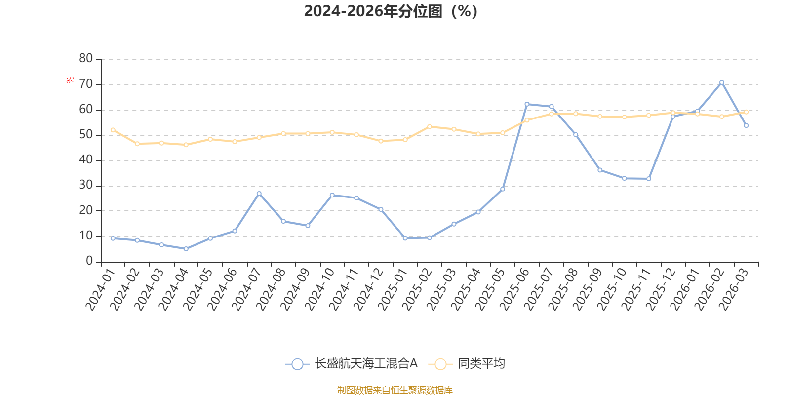 通过所选区间该基金净值增长率分位图,可以观察该基金与同类基金业绩比较情况。图为坐标原点到区间内某时点的净值增长率在同类基金中的分位数。