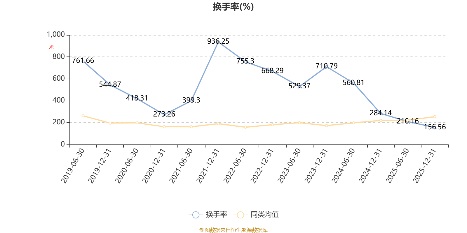 截至2025年12月31日,基金最近一年换手率约369.66%,持续1年低于同类均值。