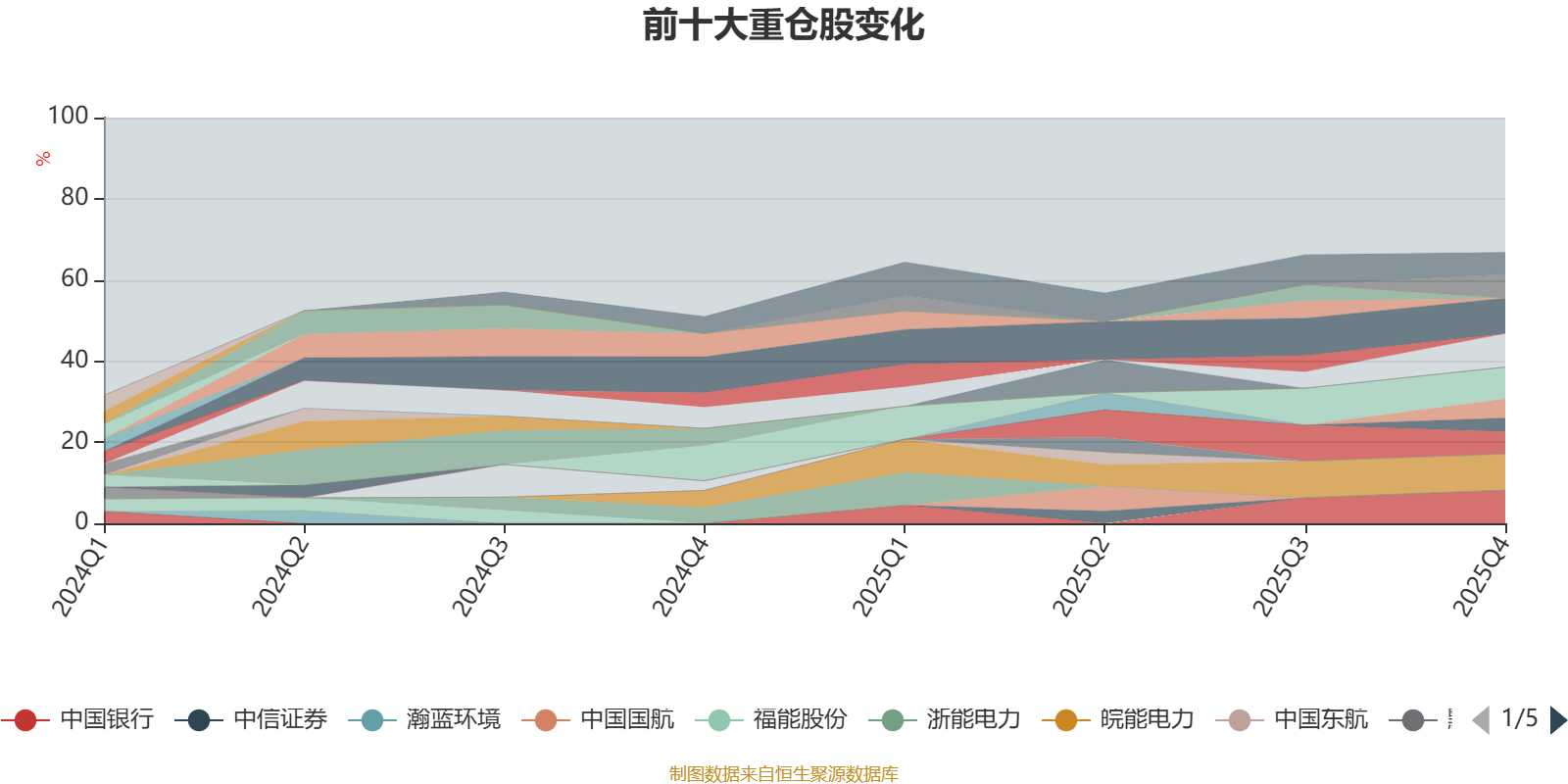 截至2025年末,基金十大重仓股分别是皖能电力、长江电力、国电电力、中国银行、工商银行、建设银行、建投能源、申能股份、寒武纪、华电国际。