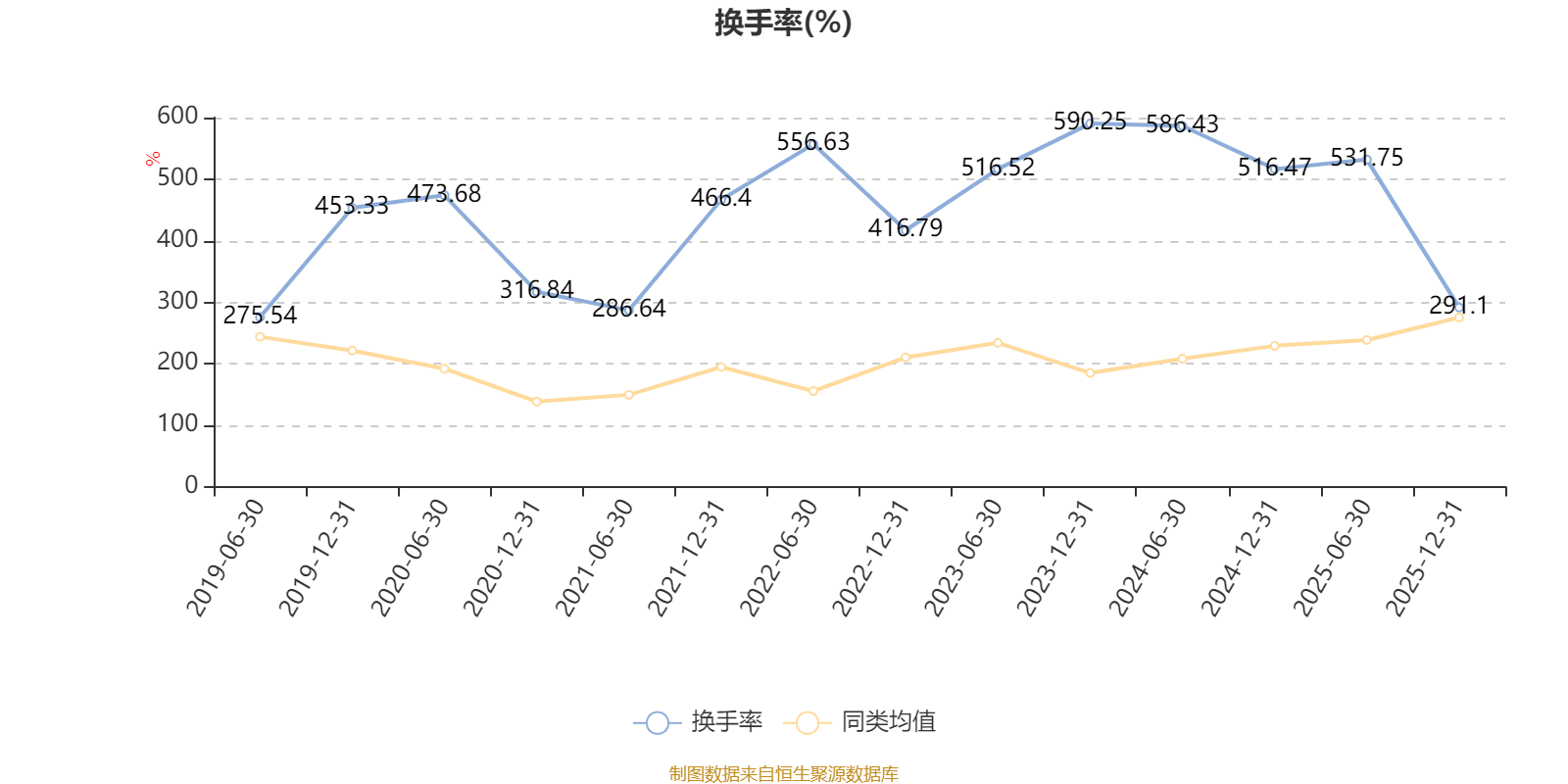 截至2025年12月31日,基金最近一年换手率约705.16%,持续高于同类均值。