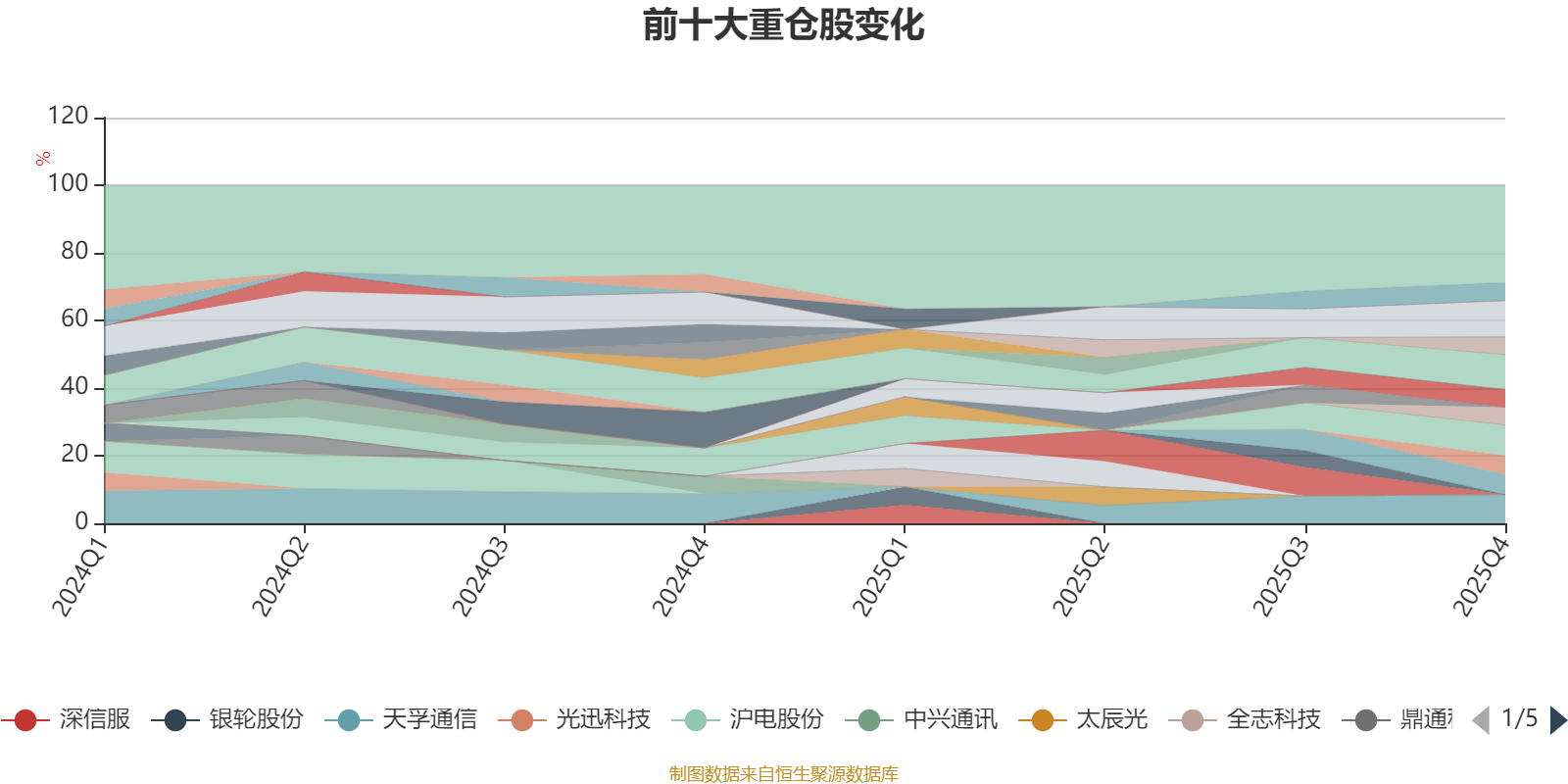 该基金持股集中度较高,近2年前十大重仓股集中度长期超过60%。截至2025年末,基金十大重仓股分别是中际旭创、新易盛、寒武纪、天孚通信、罗曼股份、中石科技、胜宏科技、仕佳光子、长芯博创、东山精密。