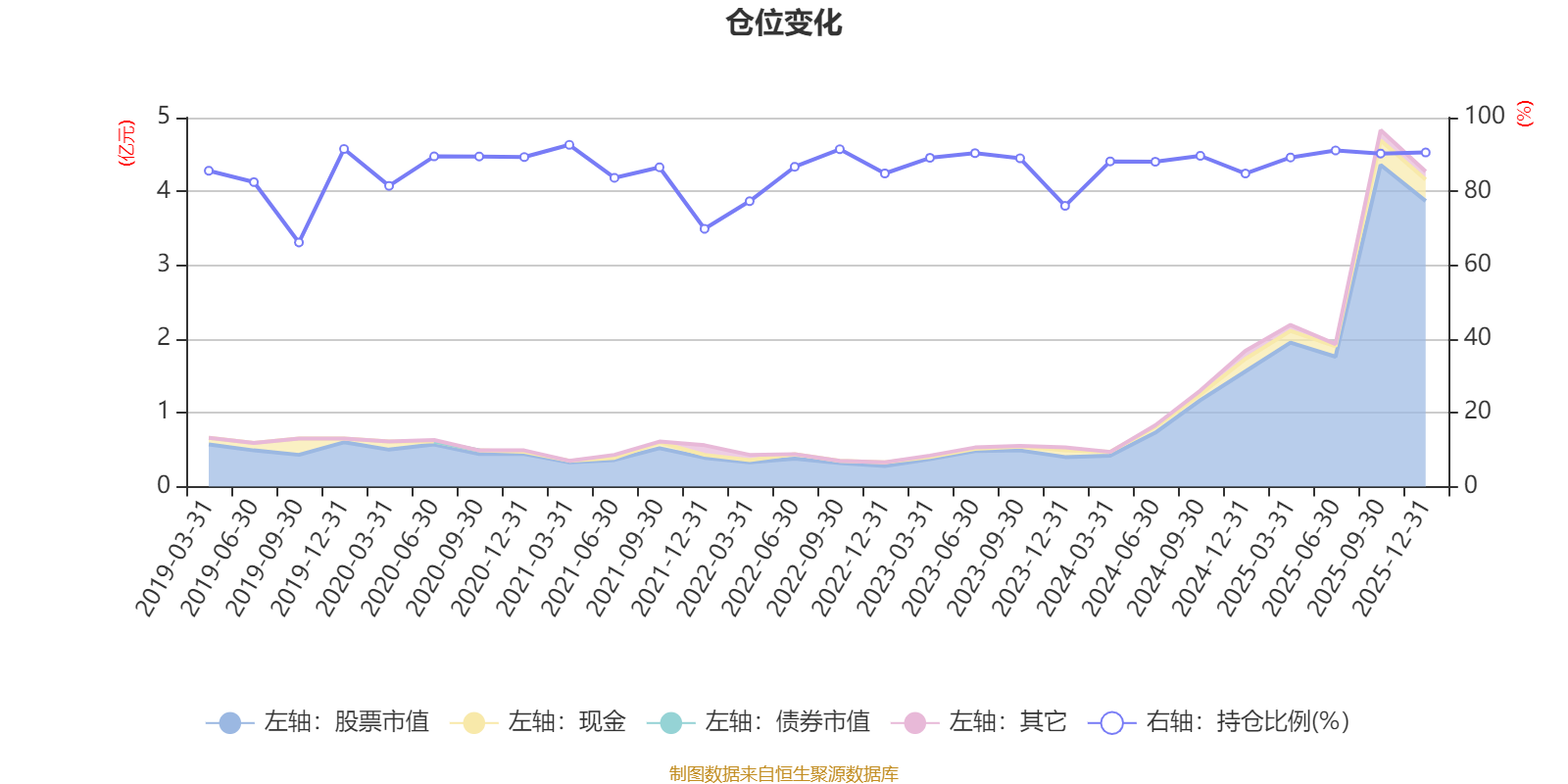 据定期报告数据统计,近三年平均股票仓位为88.02%,同类平均为86.9%。2021年一季度末基金达到92.62%的最高仓位,2019年三季度末最低,为66.15%。