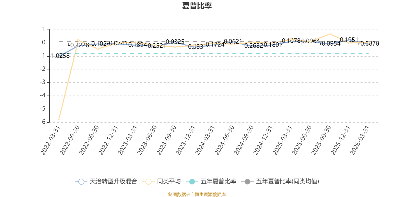 截至3月31日,基金近三年夏普比率为-0.5966,位于同类可比基金393/393。