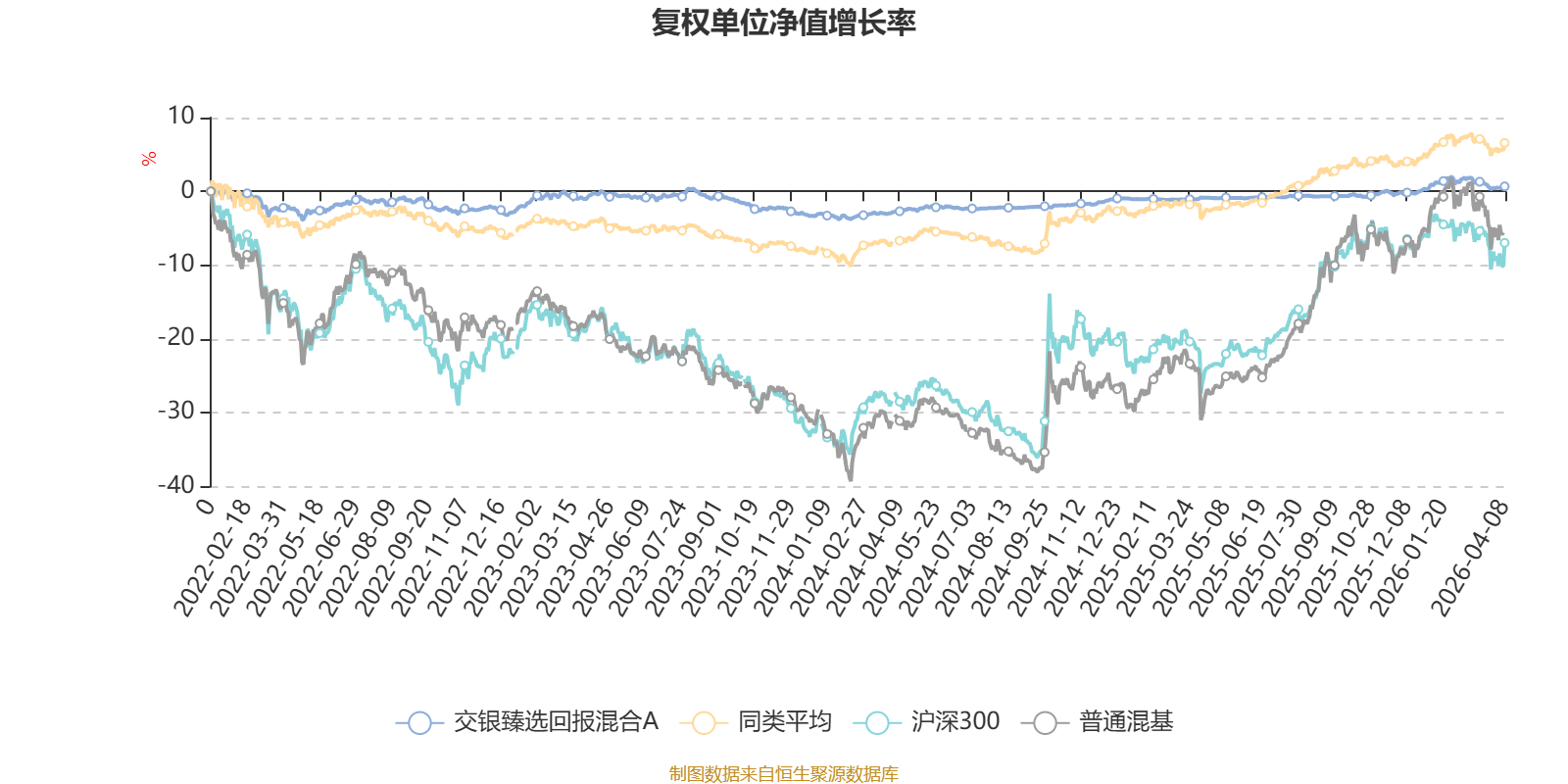 截至4月8日,交银臻选回报混合A近三个月复权单位净值增长率为-0.16%,位于同类可比基金435/629;近半年复权单位净值增长率为1.07%,位于同类可比基金368/629;近一年复权单位净值增长率为1.56%,位于同类可比基金602/629;近三年复权单位净值增长率为0.85%,位于同类可比基金529/581。