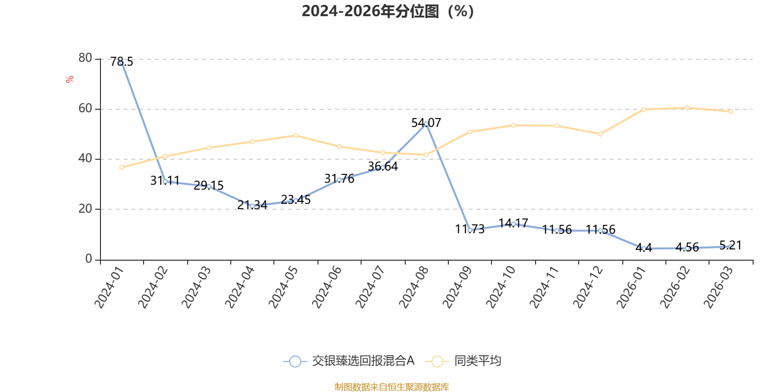 通过所选区间该基金净值增长率分位图,可以观察该基金与同类基金业绩比较情况。图为坐标原点到区间内某时点的净值增长率在同类基金中的分位数。