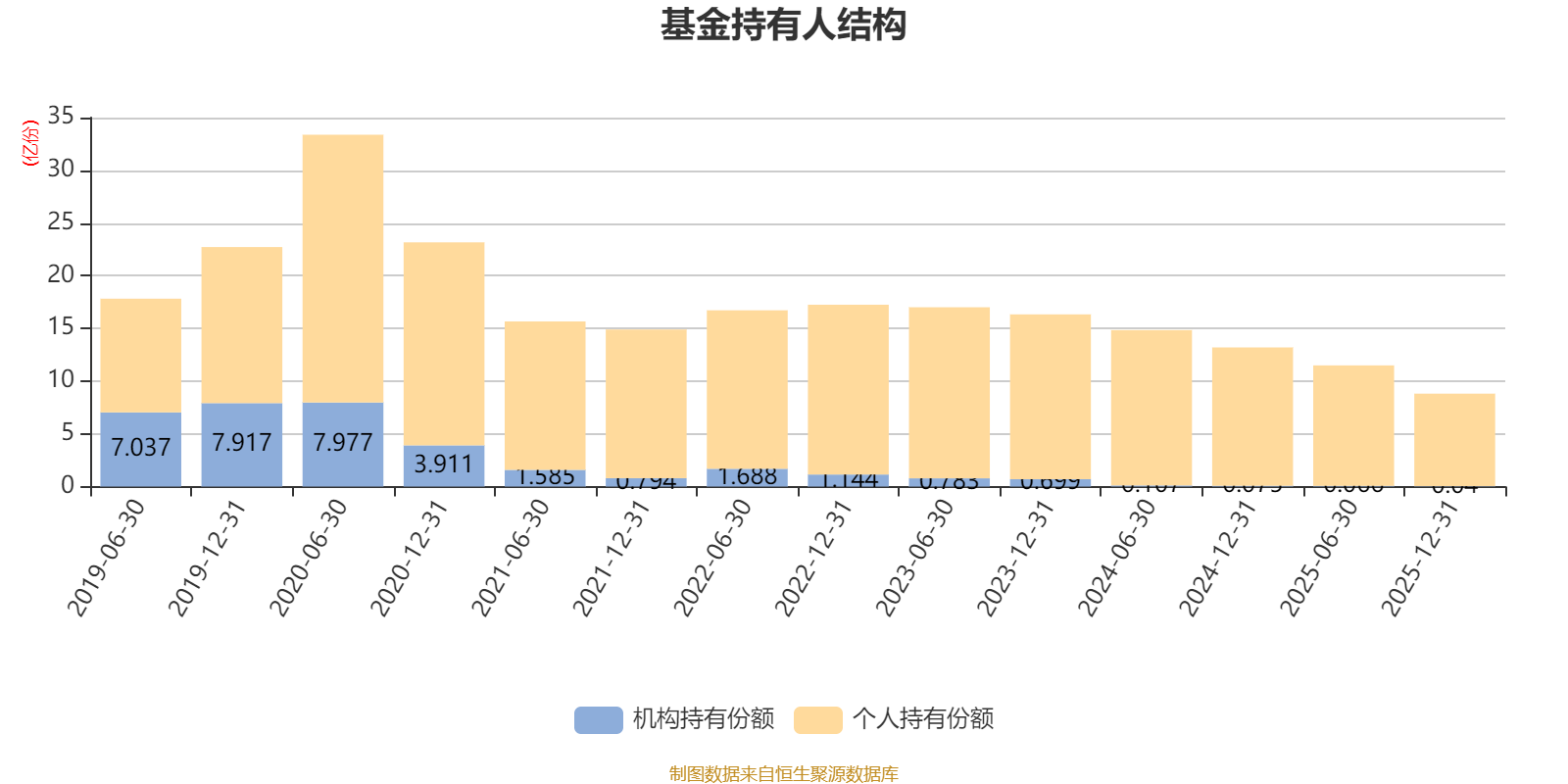 截至2025年12月31日,基金持有人共计11.18万户,合计持有8.81亿份。其中管理人员工持有39.66万份,占比0.05%,机构持有份额占比0.45%,个人投资者占比99.55%。