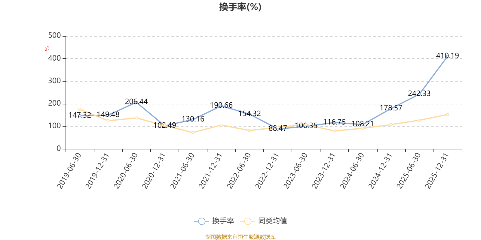 截至2025年12月31日,基金最近一年换手率约613.45%,持续2年高于同类均值。