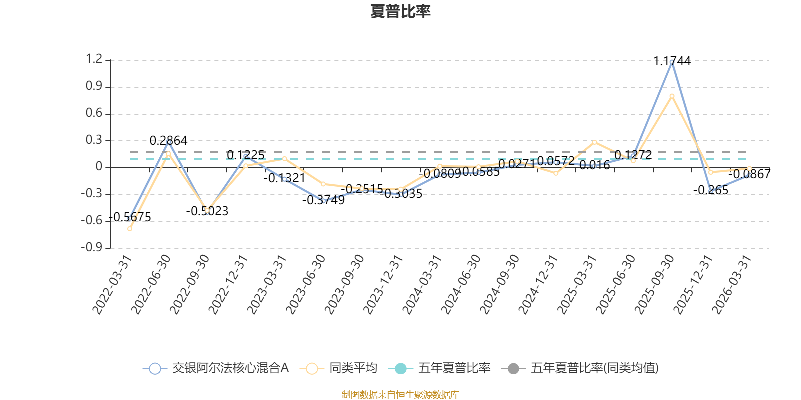 截至3月31日,基金近三年夏普比率为0.0972,位于同类可比基金117/126。