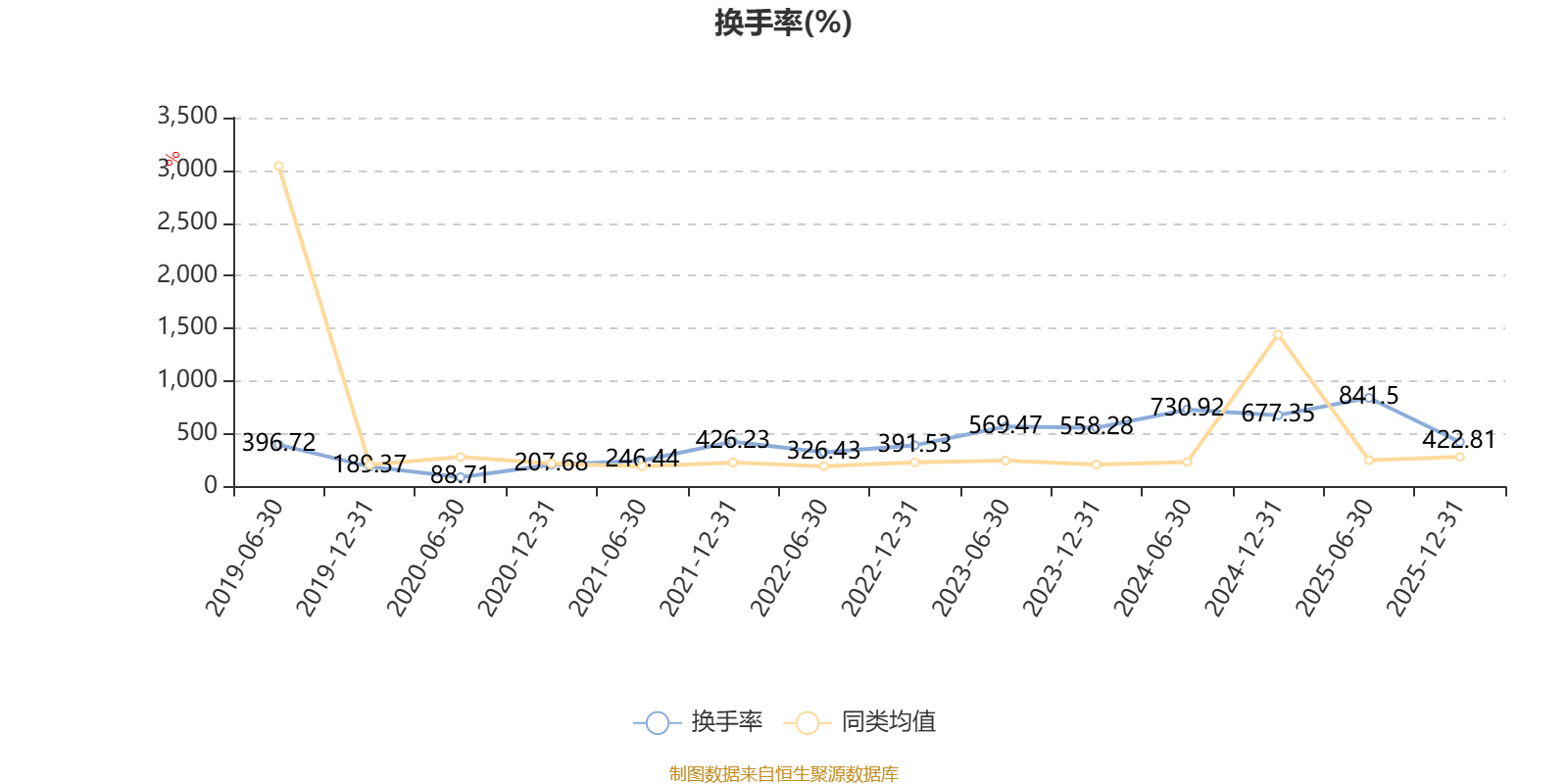 截至2025年12月31日,基金最近一年换手率约955.79%,持续1年高于同类均值。